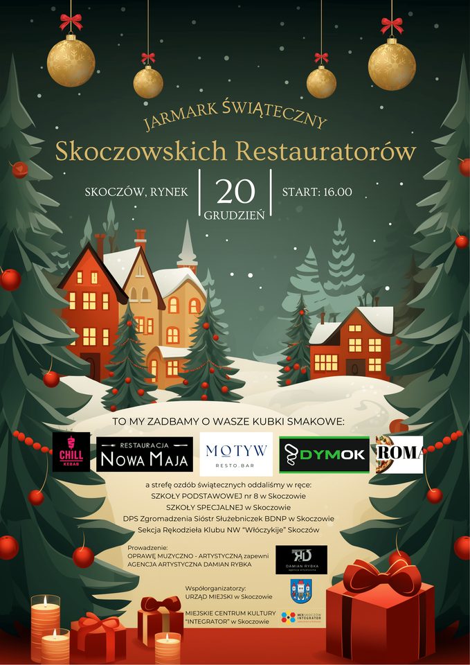 Wielkimi krokami zbliżają się Święta Bożego Narodzenia. To dla większości z nas wyjątkowy czas. W tym roku skoczowscy restauratorzy, jednocząc siły, zorganizują dla Was (pierwszy) JARMARK ŚWIĄTECZNY SKOCZOWSKICH RESTAURATORÓW.