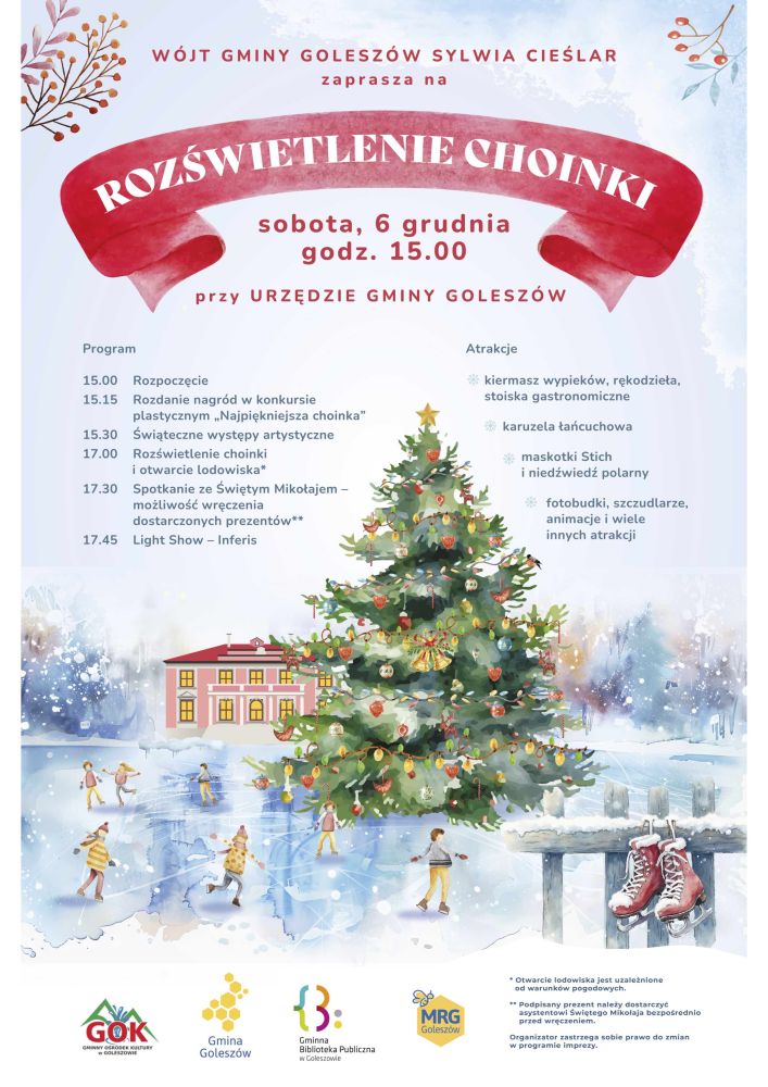 W sobotę, 6 grudnia w gminie Goleszów zapanuje prawdziwie magiczna atmosfera, związana z oficjalnym rozświetleniem gminnej choinki oraz uroczystym otwarciem mobilnego lodowiska.