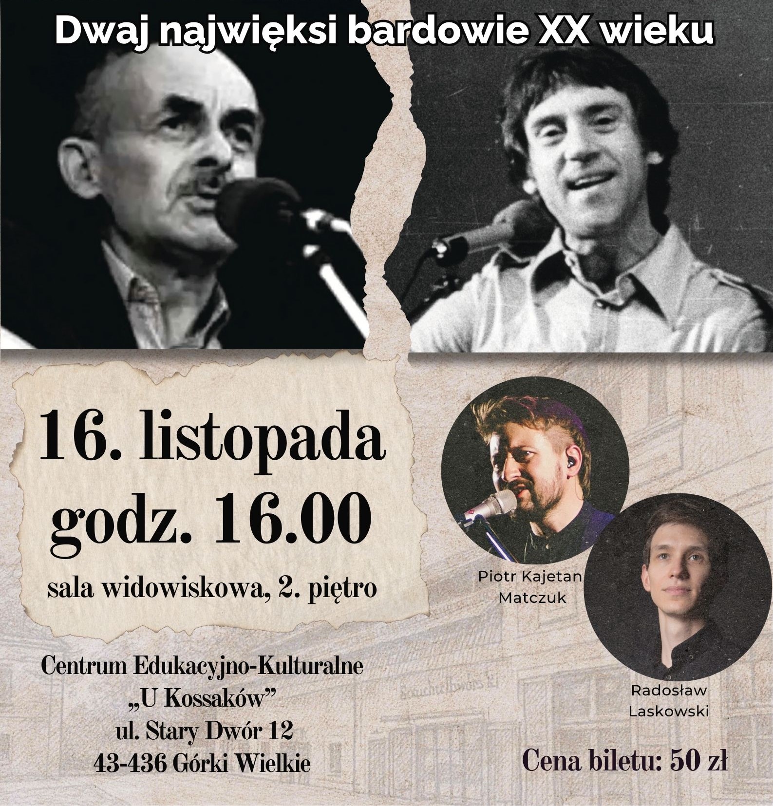 Zapraszamy na koncert pieśni Bułata Okudżawy i Włodzimierza Wysockiego w wykonaniu zespołu Piramidy! Jedyny taki koncert w regionie! Widzimy się 16 listopada o godzinie 16:00.